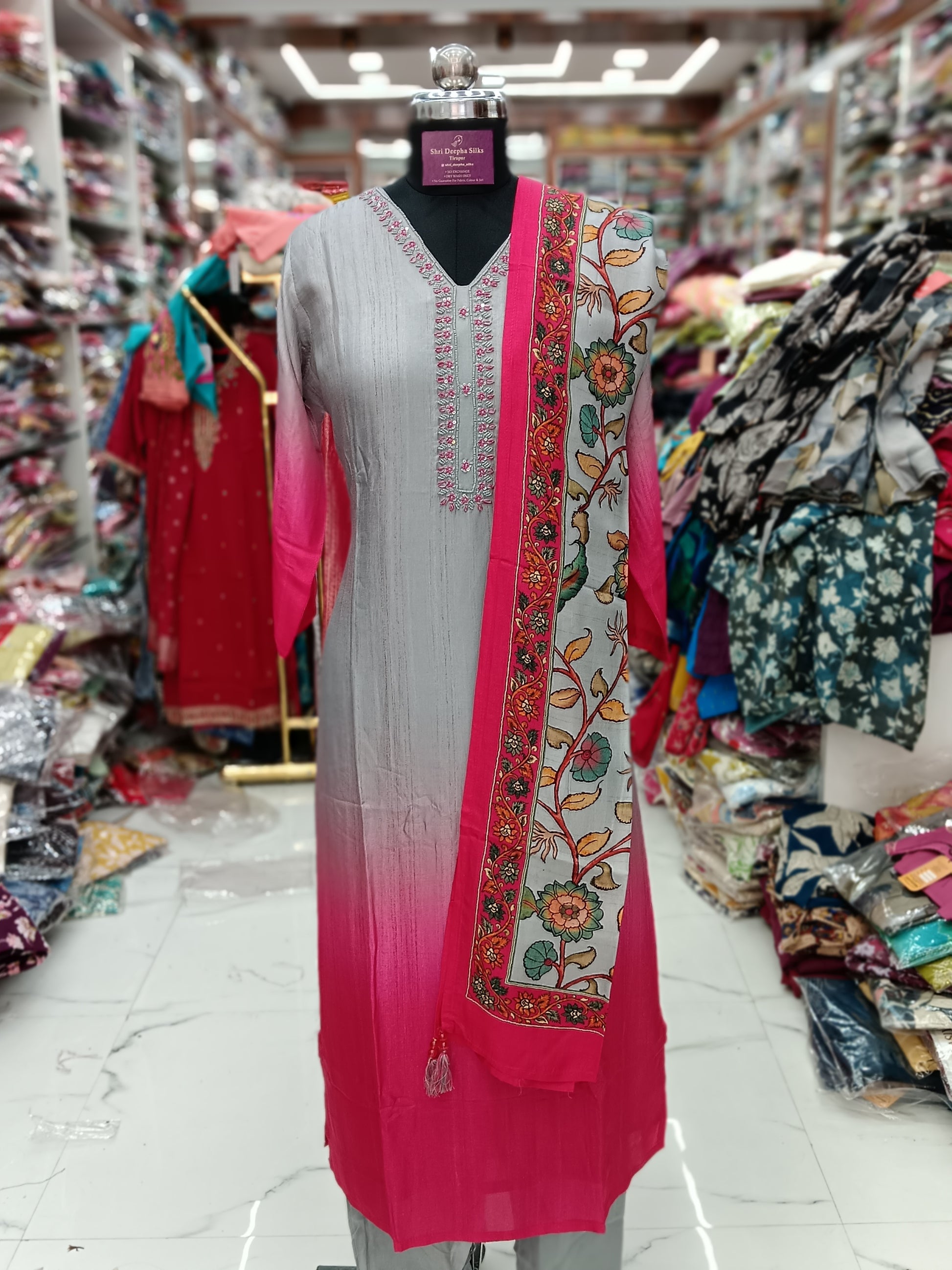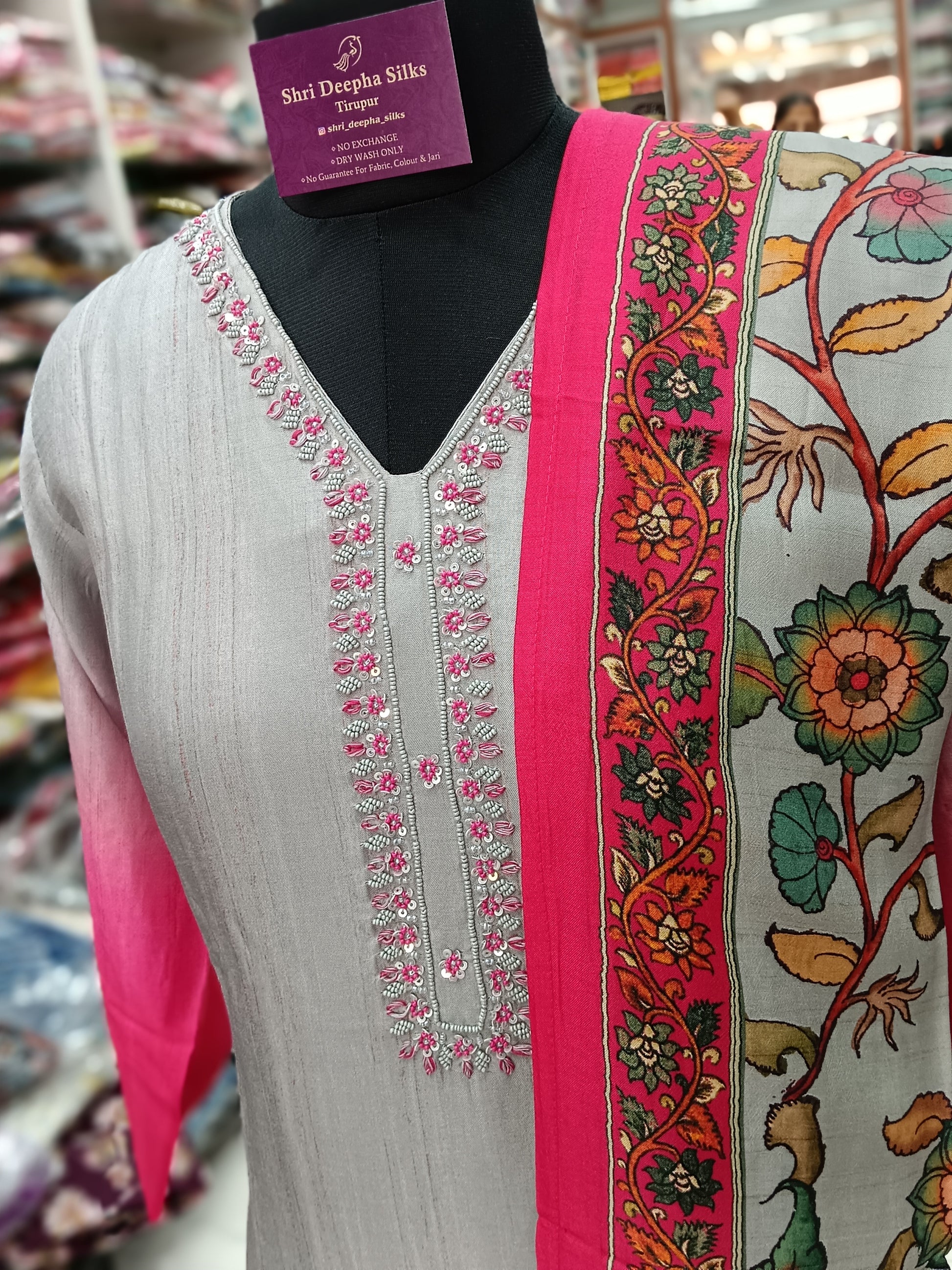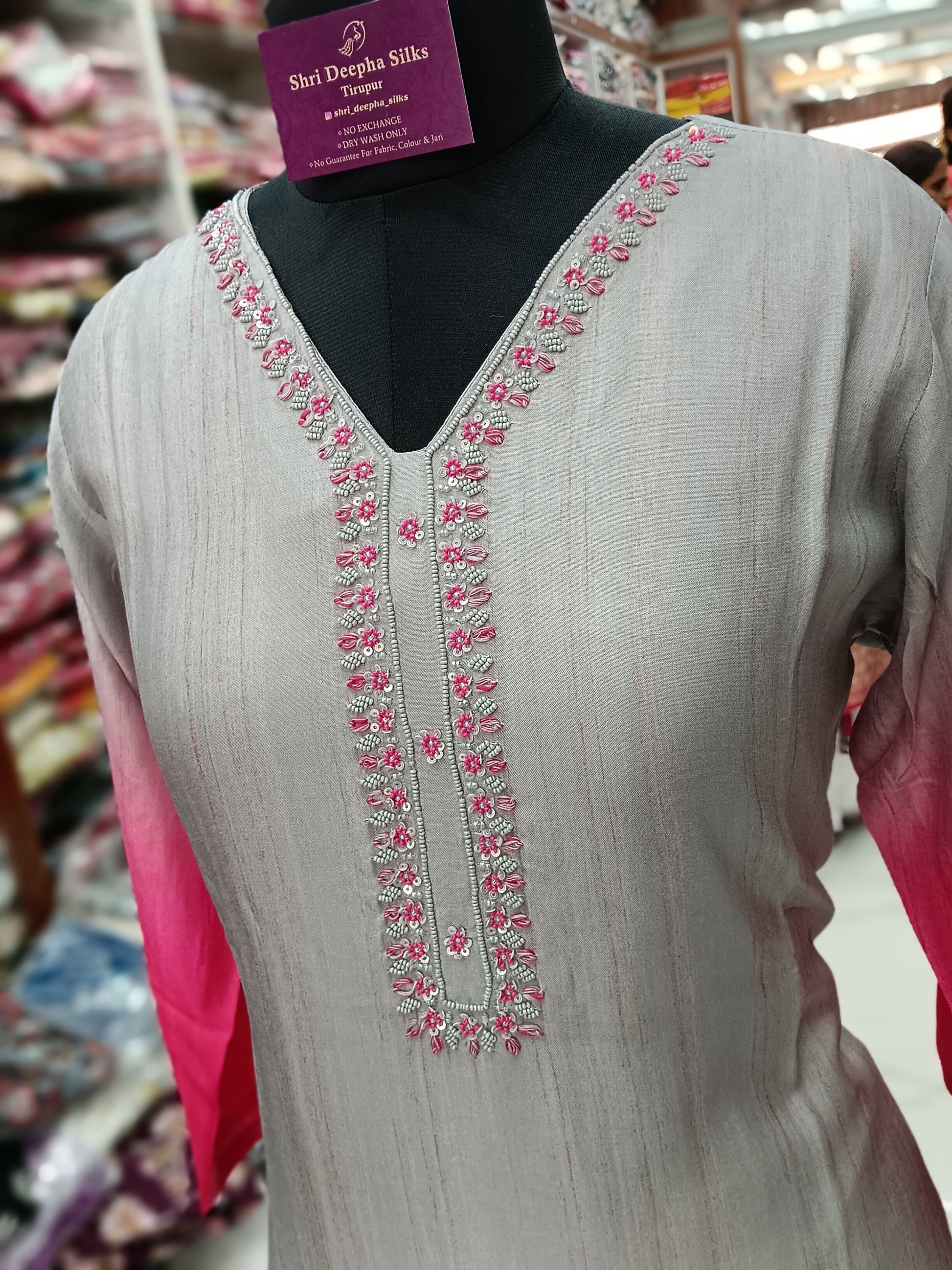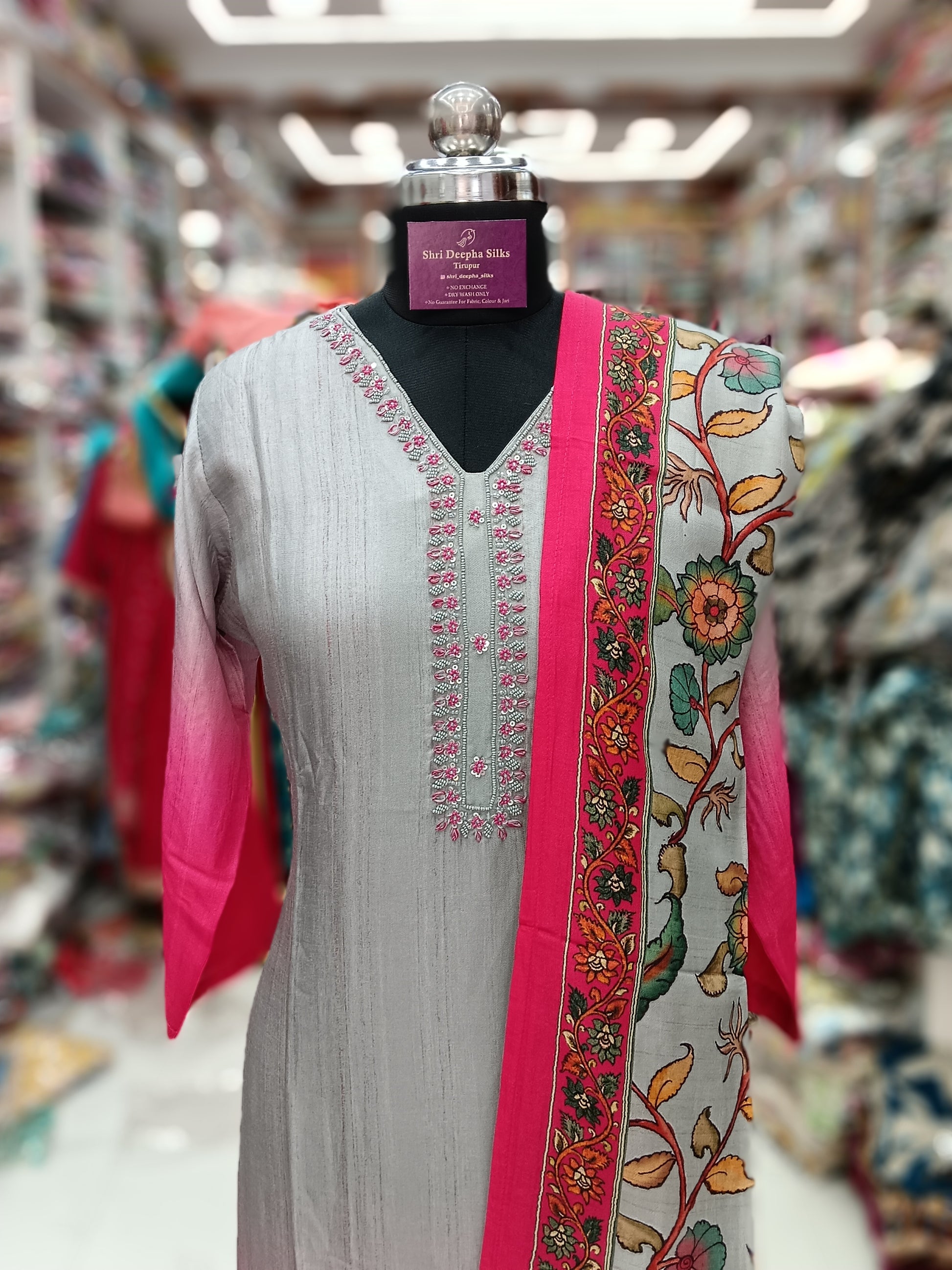 Premium Party Wear Digital Print Gray & Pink Embroidery Set