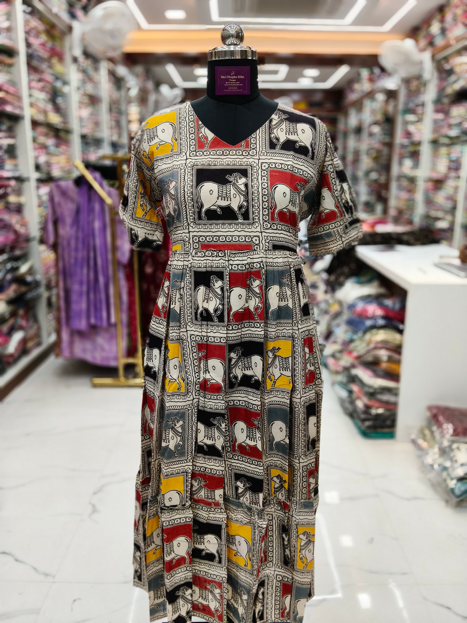 Kalamkari Cotton Puff Midi - KKMD19