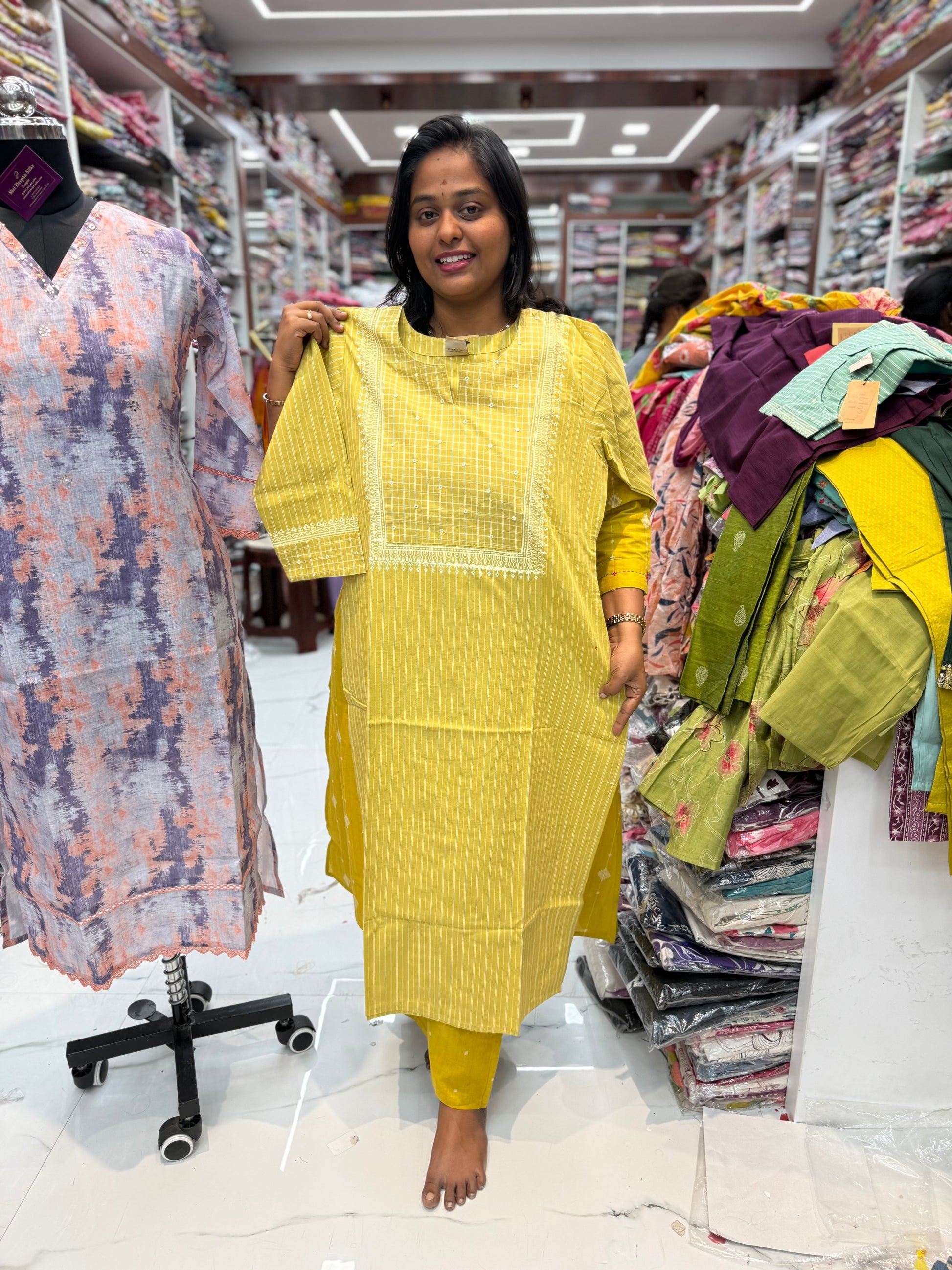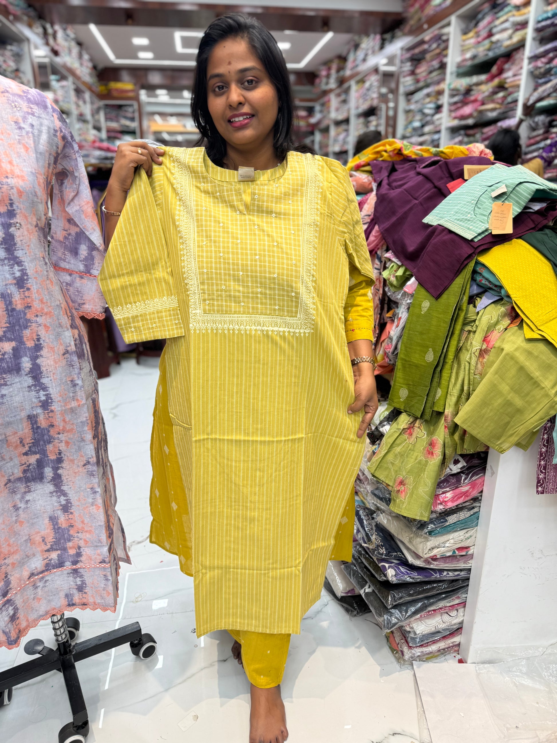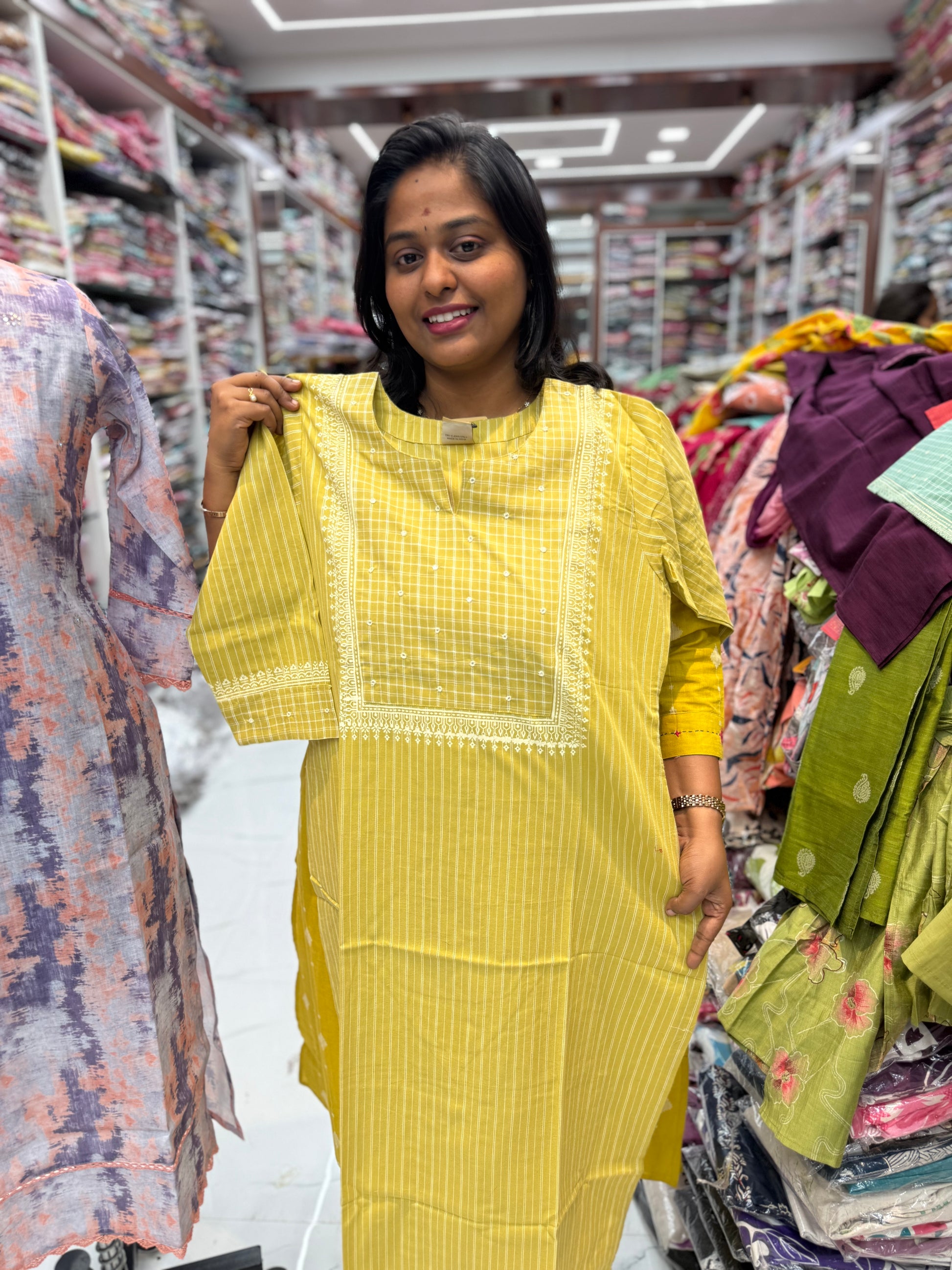 Premium Khadi Cotton Yellow Checks Kurti - KC05