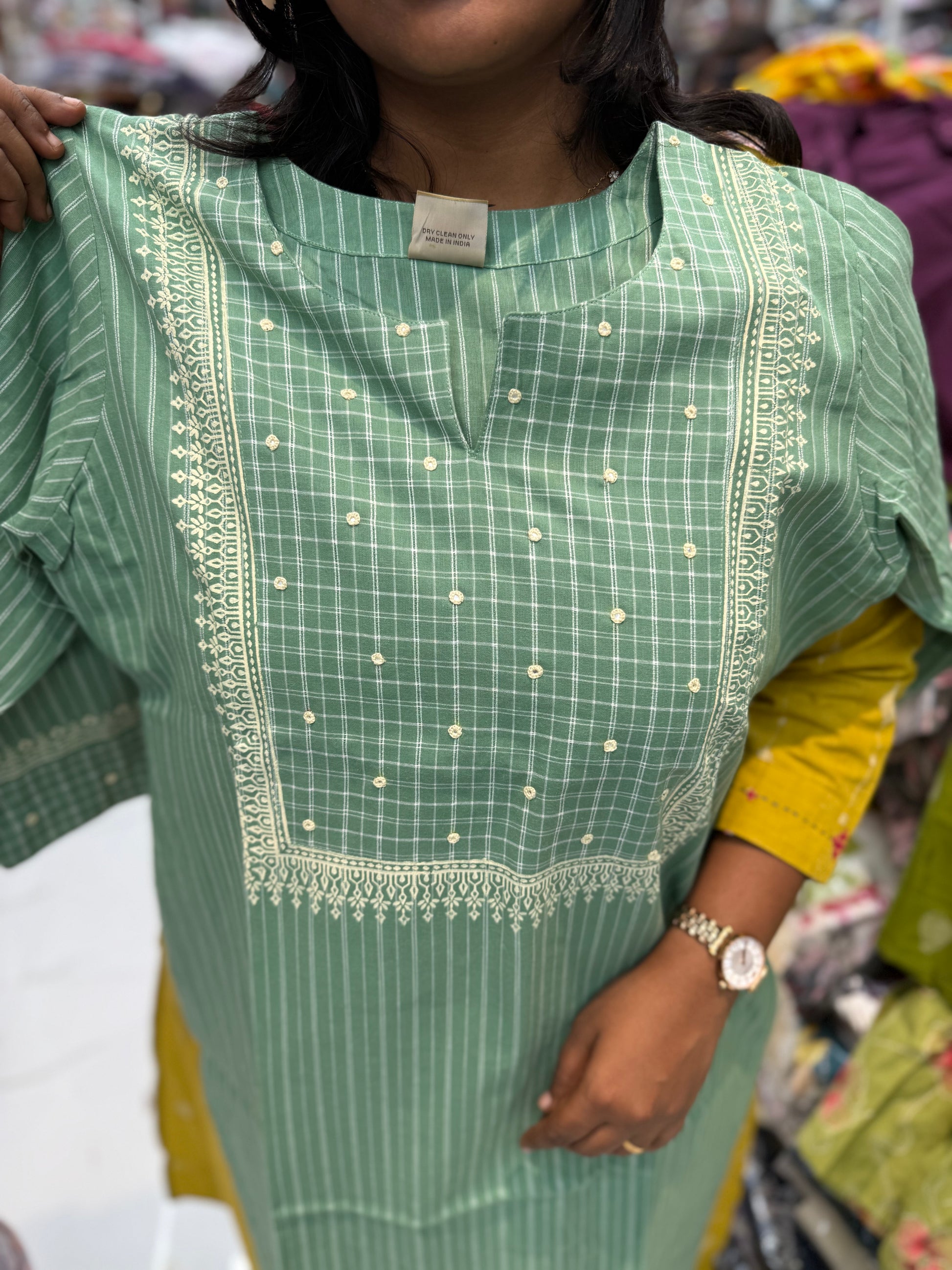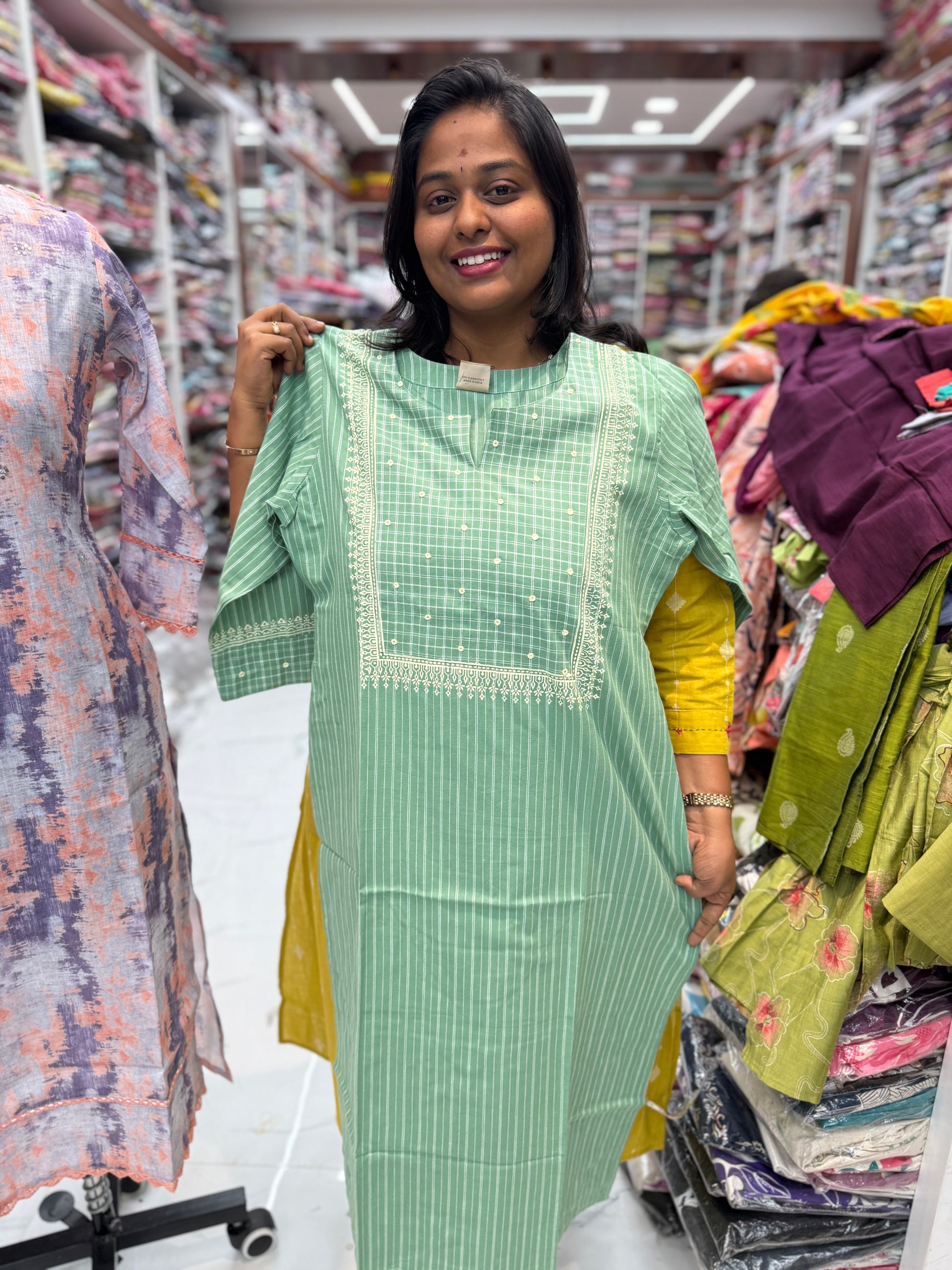 Premium Khadi Cotton Green Checks Kurti - KC03