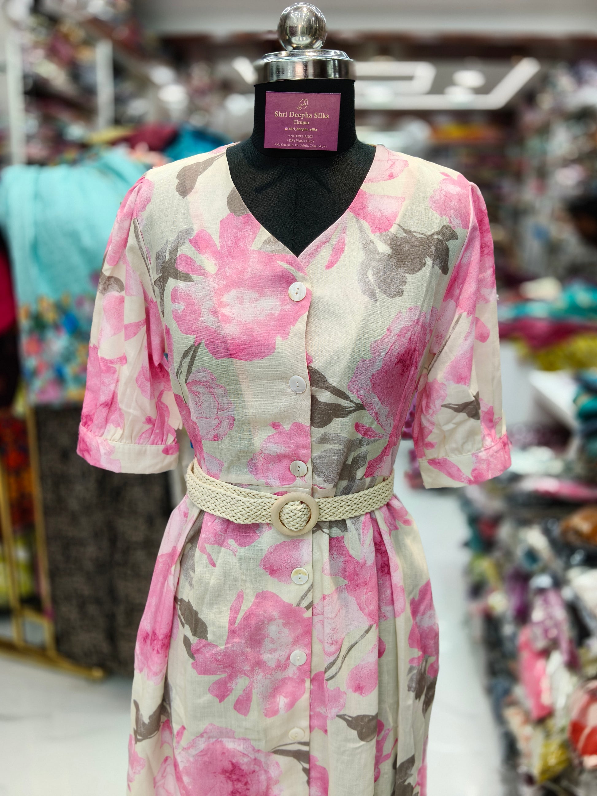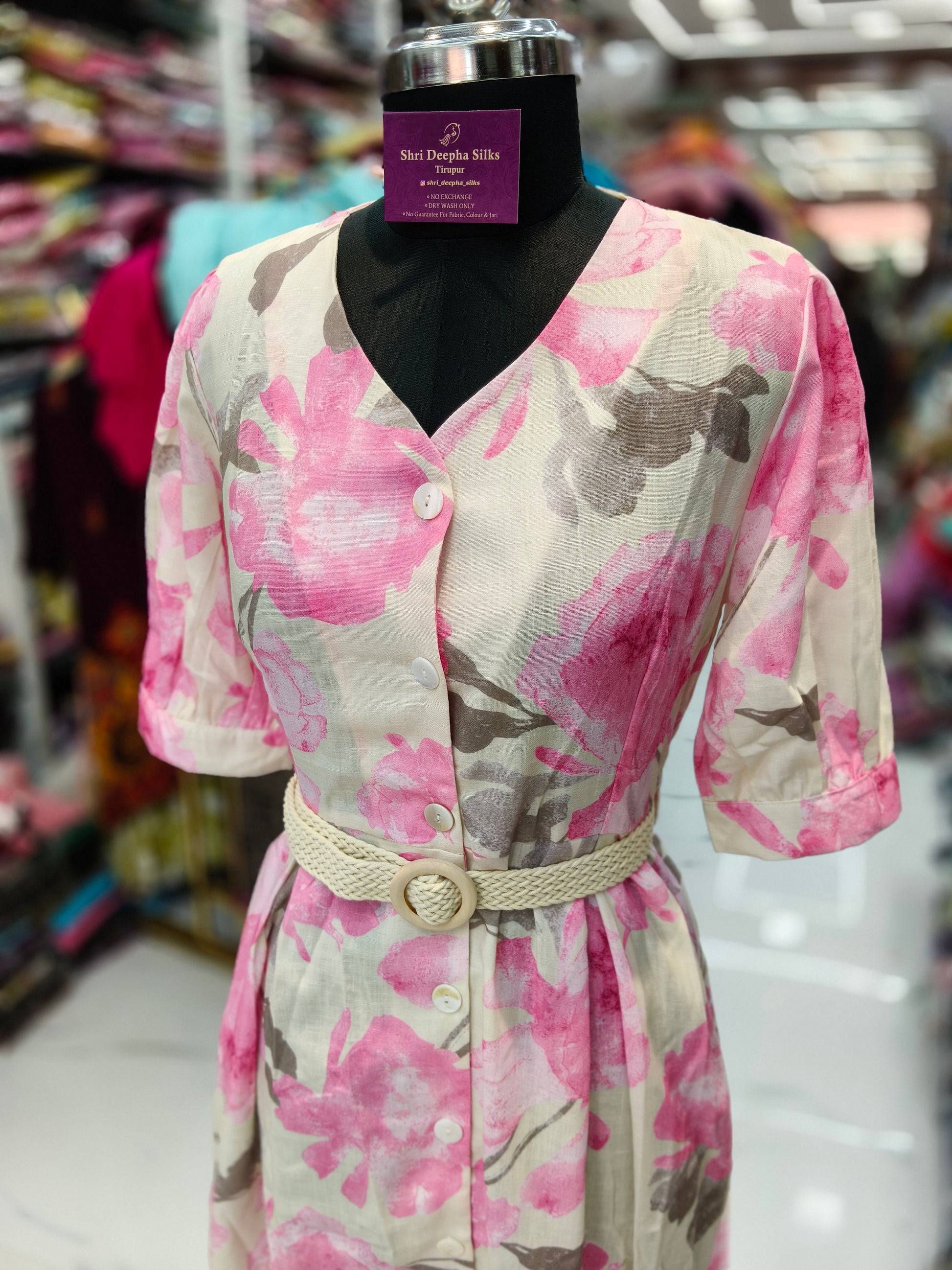 Cream and Pink Western Midi - WNMD42