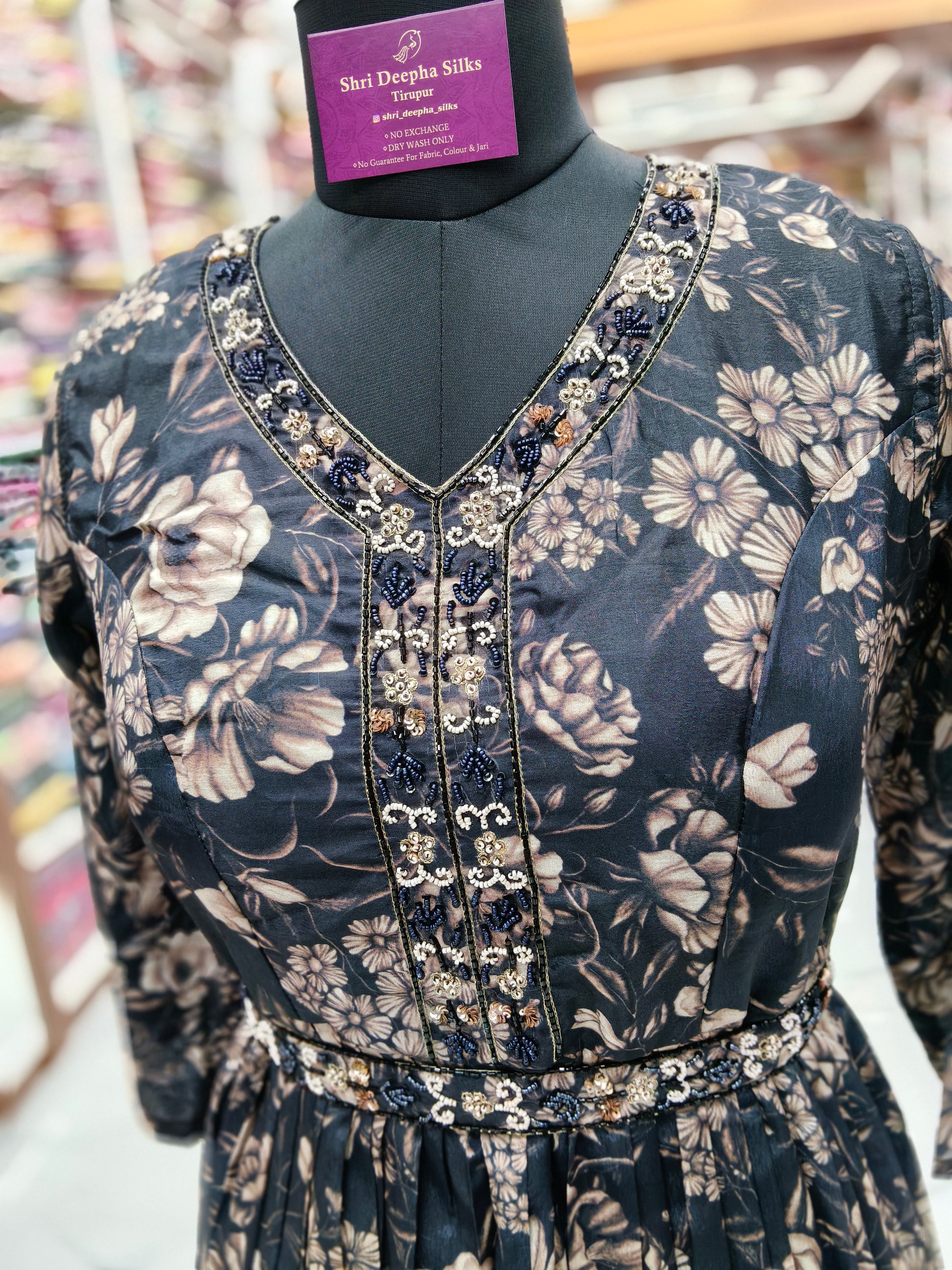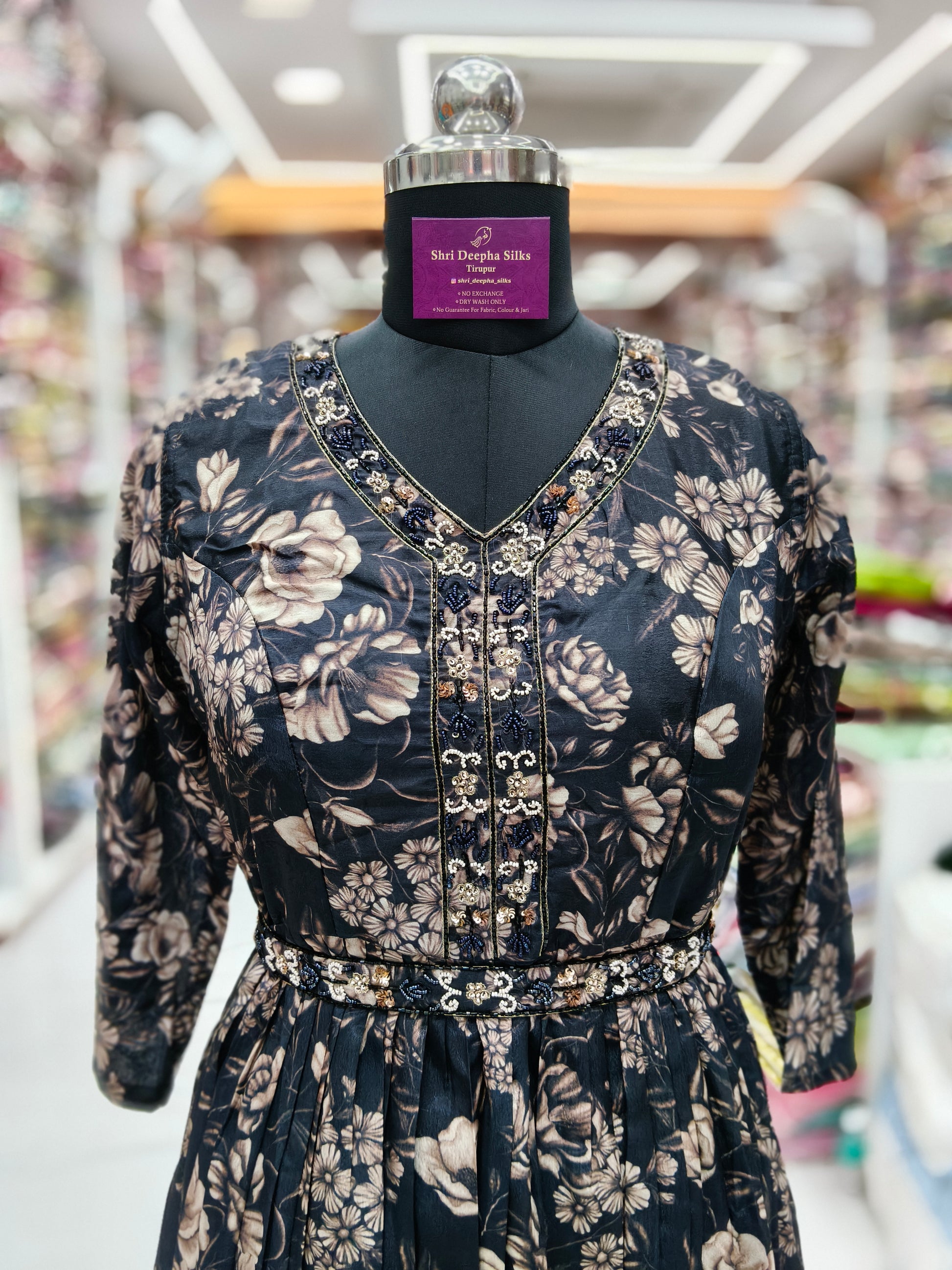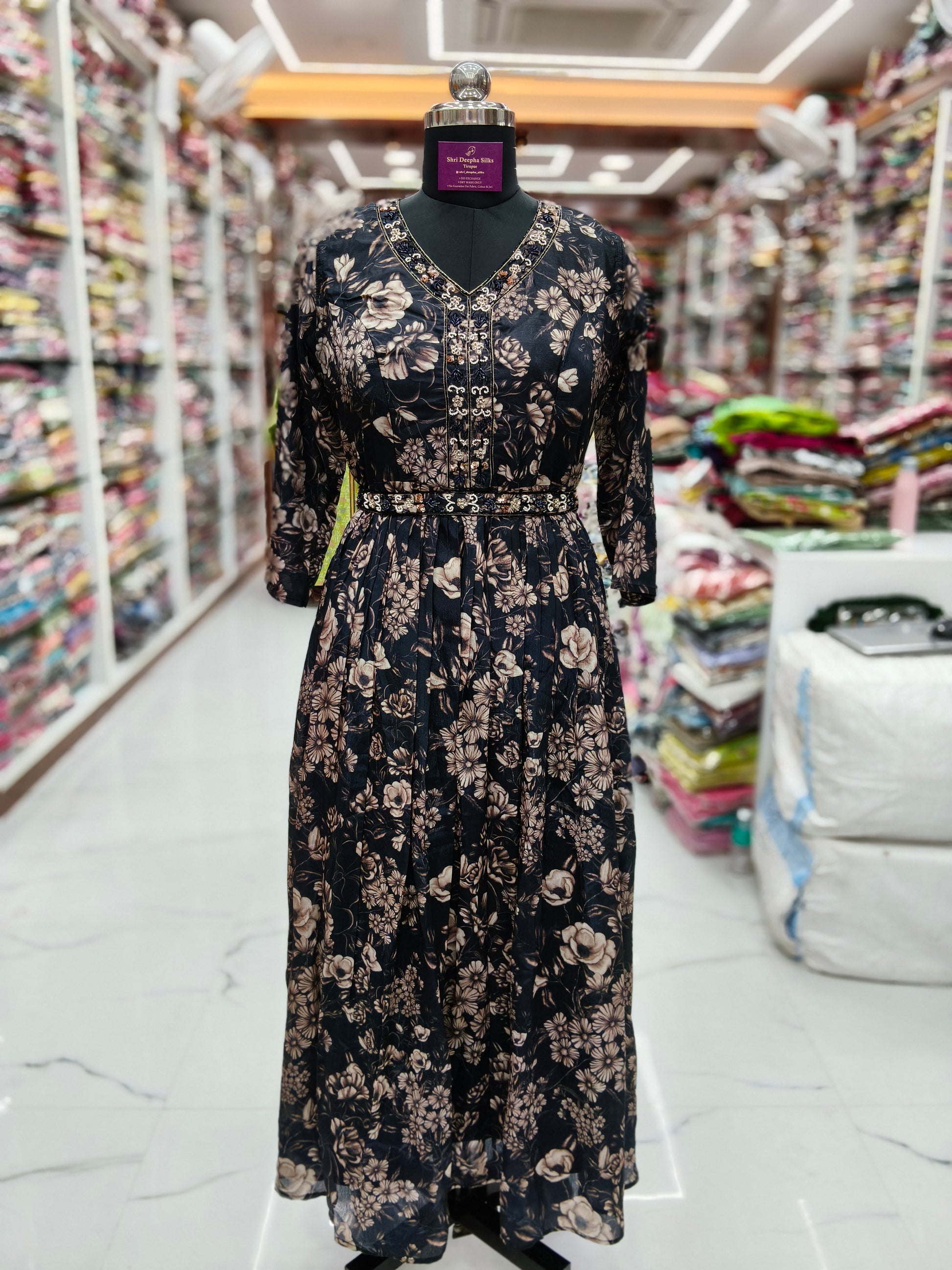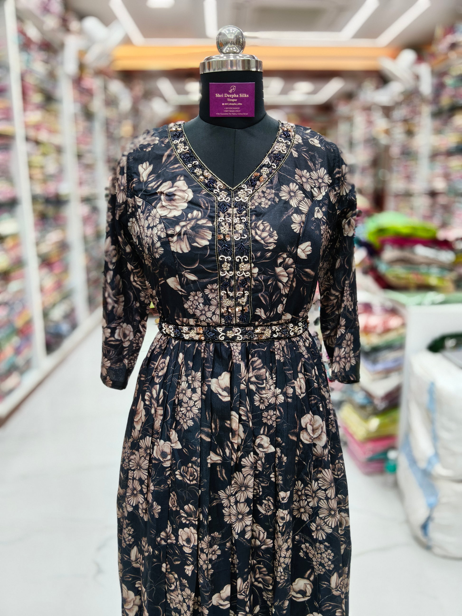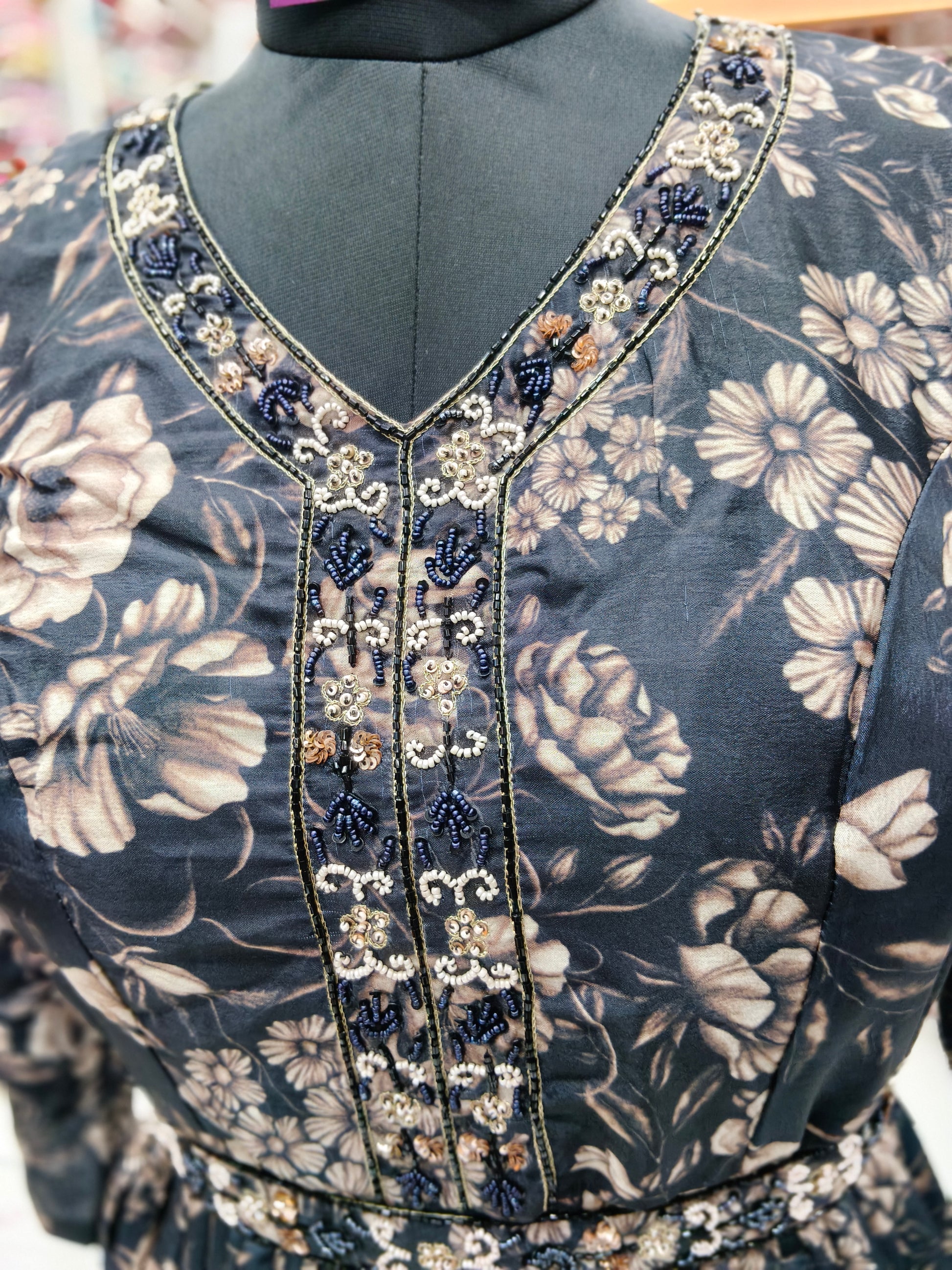 Vintage Floral Crystal Black Sequence Maxi