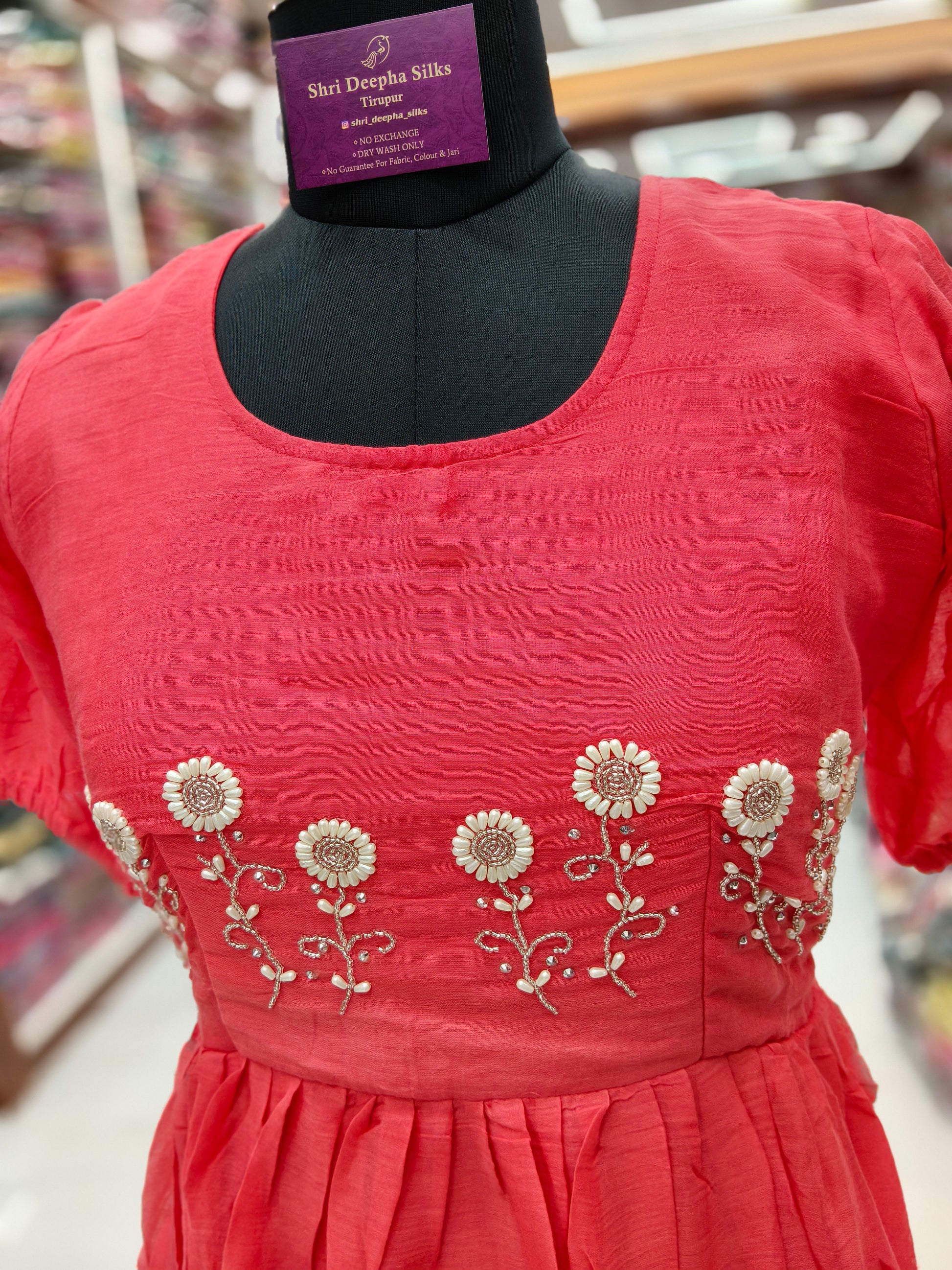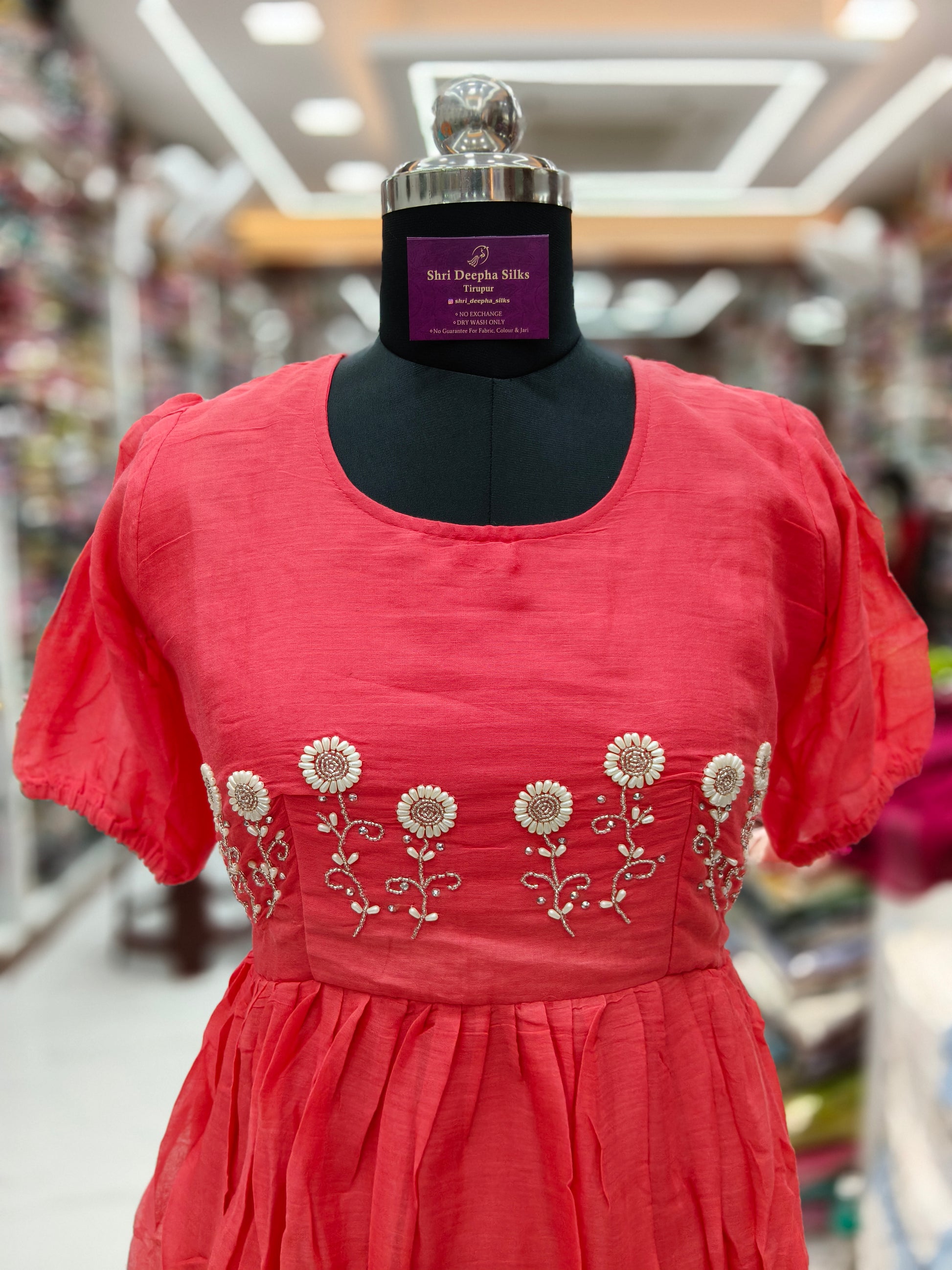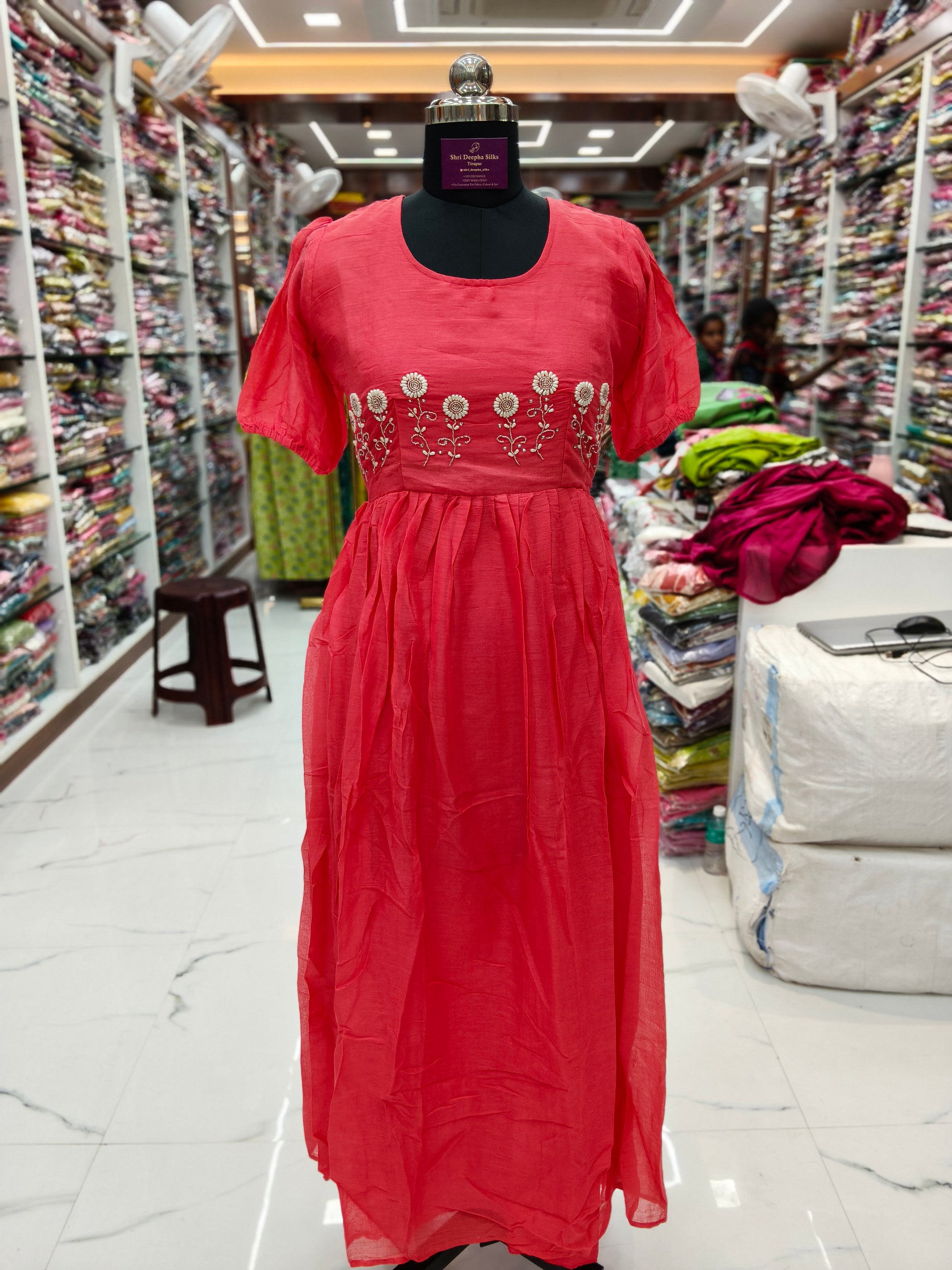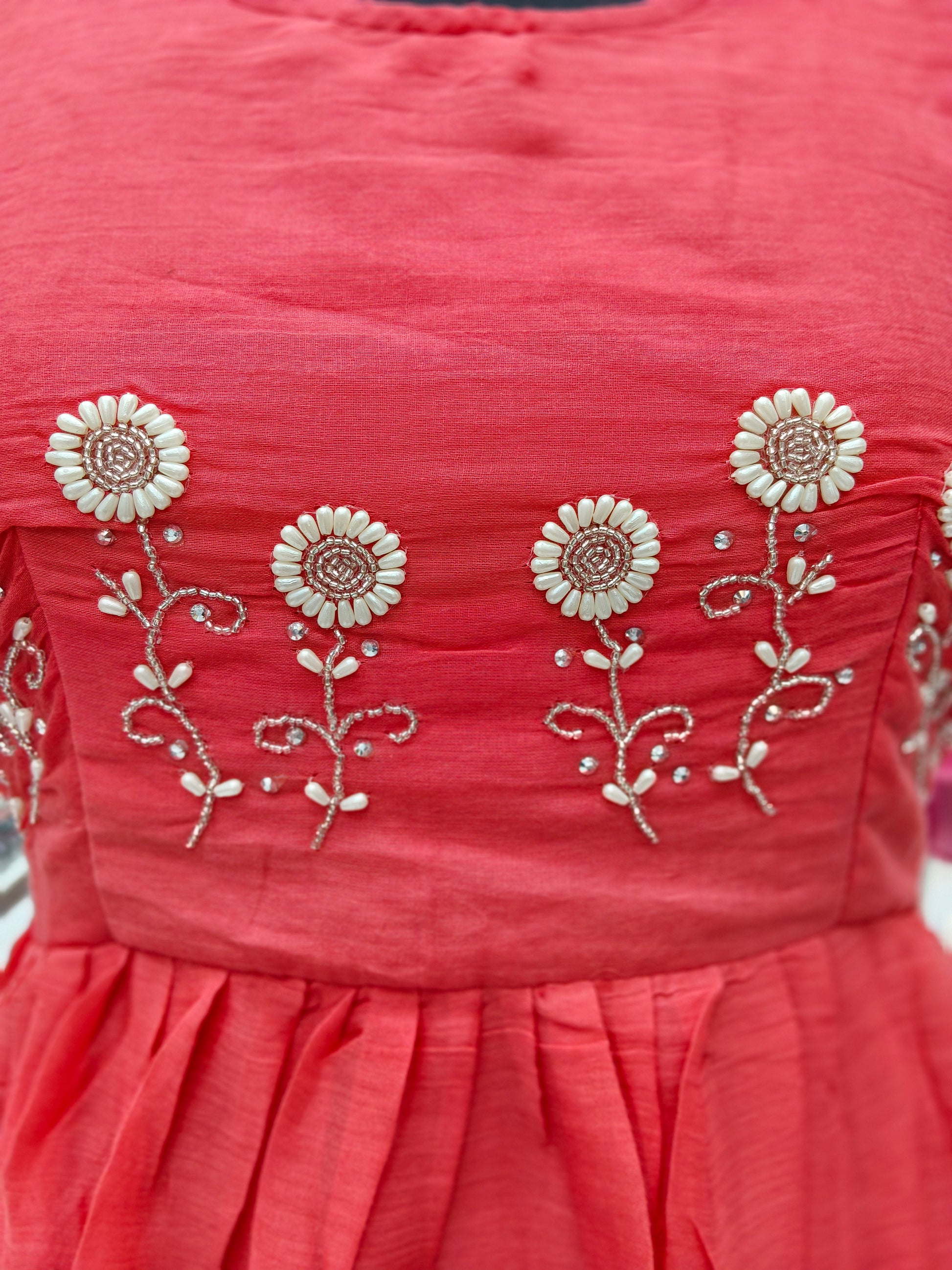 Mul Cotton Peach Embroidery Maxi