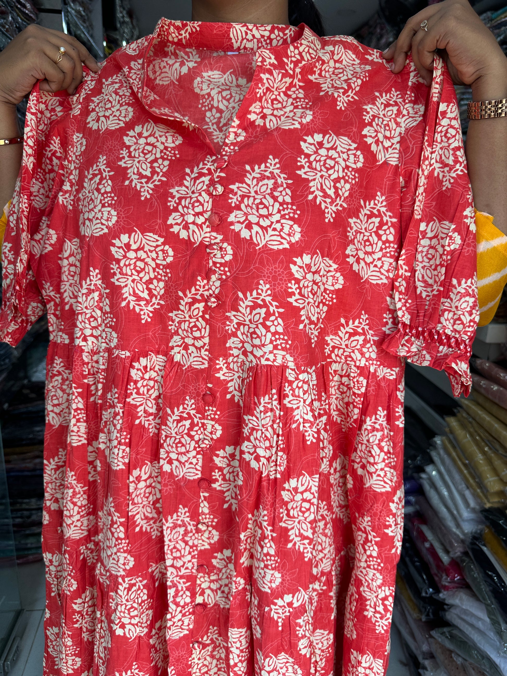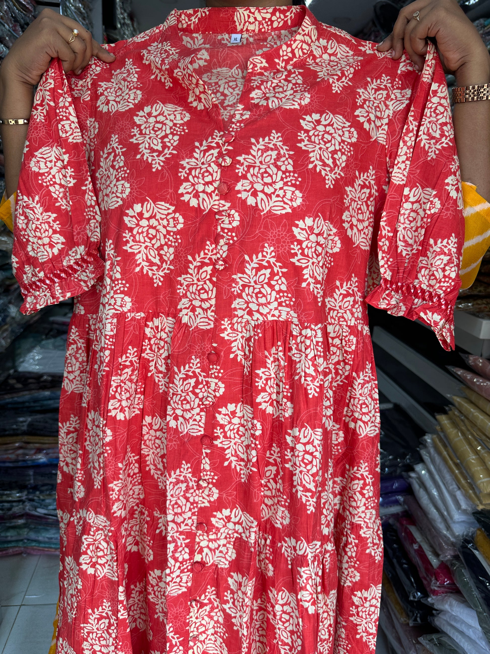 Jaipur Cotton Puff Midi dress Peach