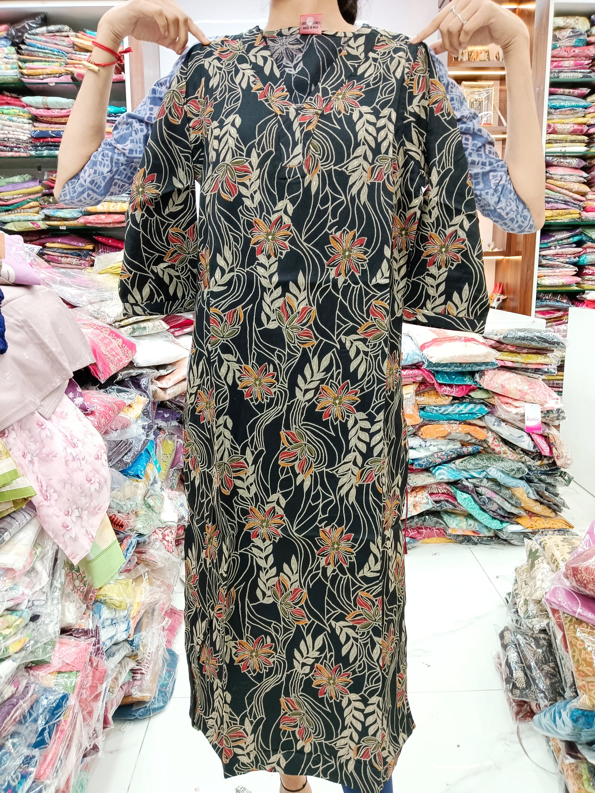 Spun Cotton Kurti - Black Leafs
